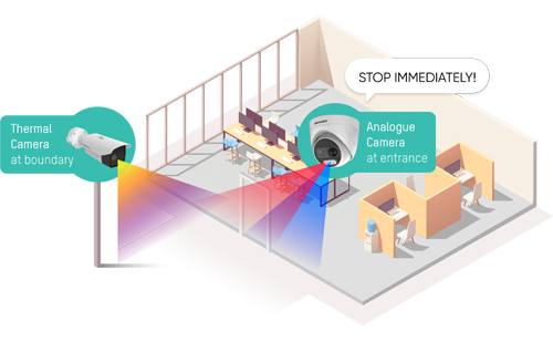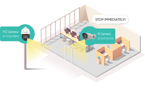 For small scenarios and indoor environments such as retail shops and small offices, Hikvision cameras not only make an audio warning and emit flashing light when the alarm is triggered, but can also allow users to communicate to the people in the monitoring area.